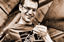 Guitarist John Finkbeiner has performed and recorded with the best and brightest in the Bay Area music scene — as a member of Darren Johnston’s United Brassworkers Front, the Smith Dobson V Quartet, Lisa Mezzacappa’s Bait & Switch, Aaron Bennett’s Go-Go Fightmaster, Sheldon Brown’s Distant Intervals, Scott Larson’s Franco Nero, the Vijay Anderson Quartet, and among many others. He co-leads the Caribbean folk ensemble Les Gwan Jupons. As recording engineer and co-founder of New, Improved Recording in Oakland, CA, John has shaped the sound of an emerging generation of West Coast creative musicians, including ROVA saxophone quartet, John Schott, Jewlia Eisenberg, Tango No. 9, Aaron Novik and Devin Hoff. He also leads his own dub reggae-jazz group Guerrilla Hi-Fi, and tours the world as an in-demand garage rock guitarist.