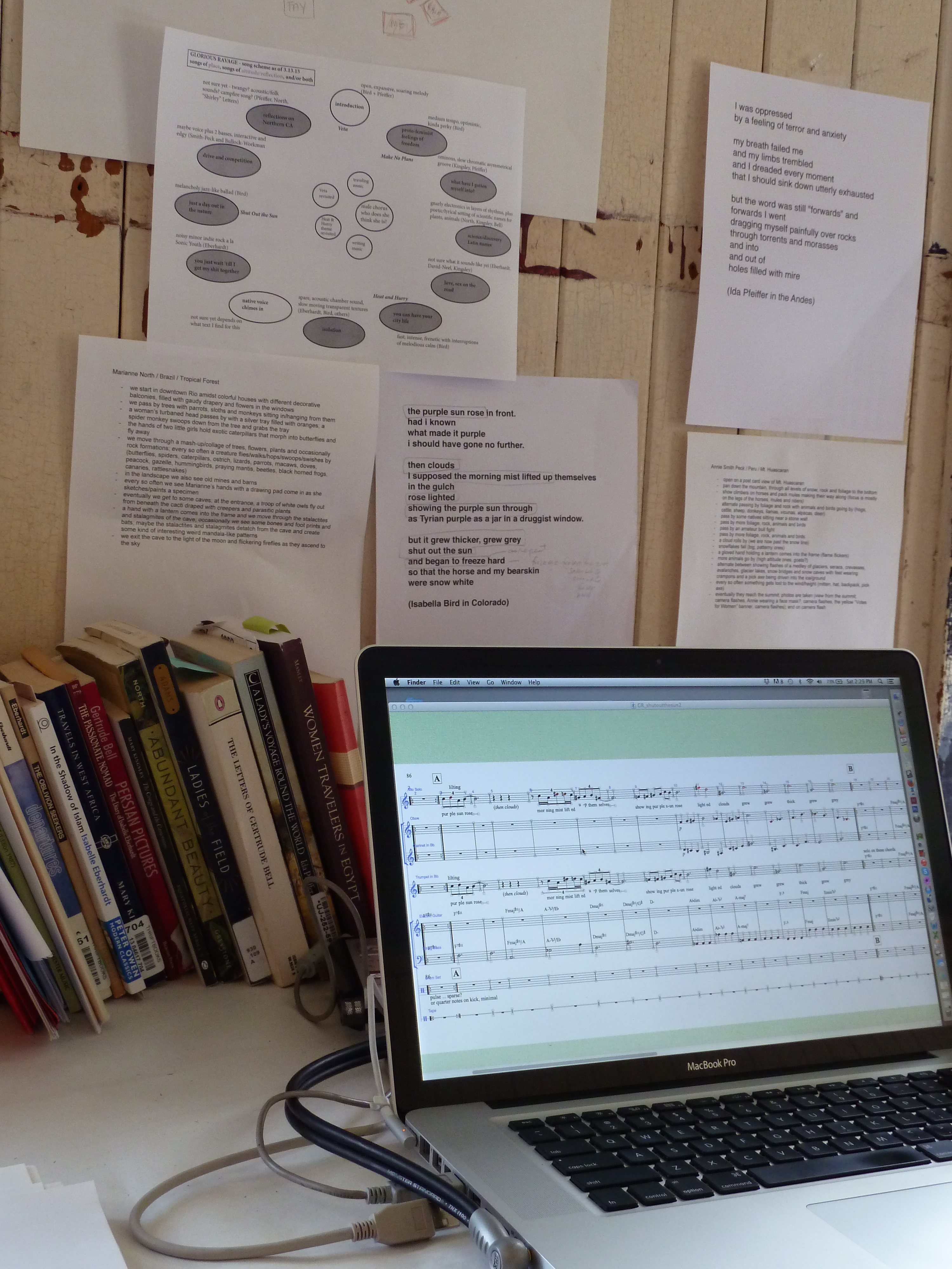 The other thing that’s great about being up here, is I’m having to get better at talking about this beast of a project. Pretty much every night, there’s some new (super intelligent, informed, creative) person at the communal dinner table asking you, “so what are you working on?” If you answer that a dozen times in a couple of weeks, you are bound to get better at the answer…it’s a good process for me, since this thing just sprawls and sprawls in my mind the deeper I get into it, and that’s just not possible for someone who is not me, to grab a hold of. It’s a funny thing needing to work on these really specific things like, writing out a harmony for a section with four wind players, or notating a complicated percussion part, and then needing to zoom back out to 10,000 feet to check in on the whole shape, the duration of one thing compared to another, the flow from one section to the next.